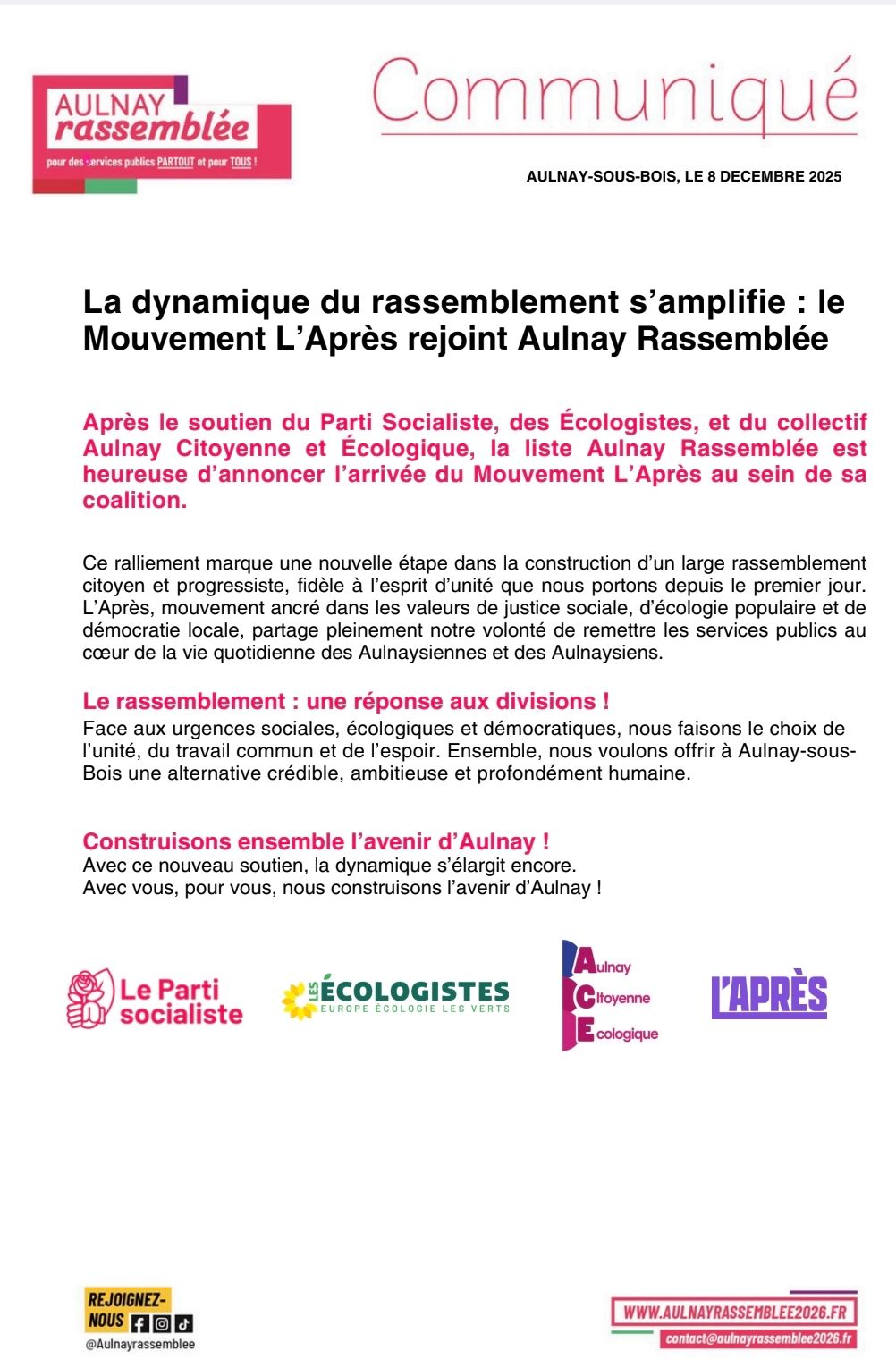 8 décembre 2025 :Municipales 2026 à Aulnay, un article du Parisien