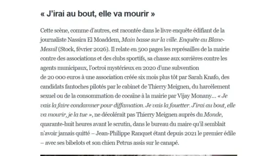Le maire officieux du Blanc-Mesnil menace dans Le Monde