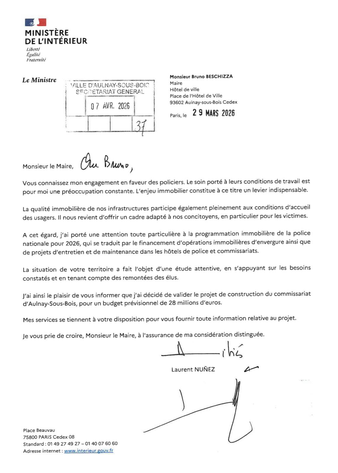 En août dernier, le maire, Bruno Beschizza, a adressé un courrier au préfet de police, Laurent Nuñez, concernant le futur commissariat d’Aulnay-sous-Bois.