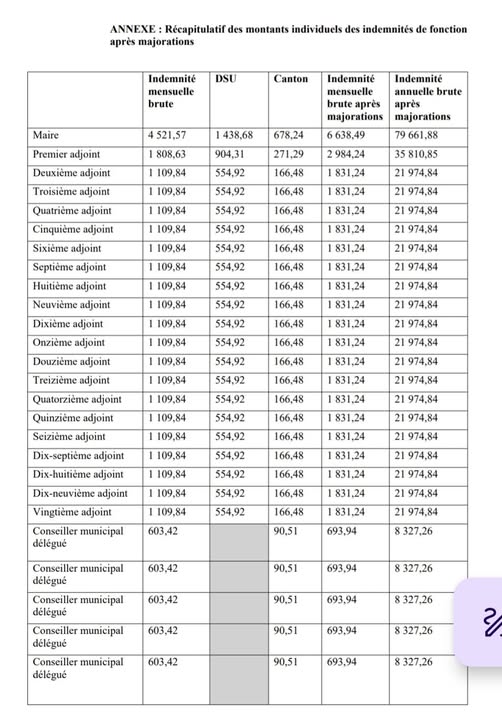 Séverine Maroun, sa première adjointe a eu l'immense faveur de voir son indemnité augmenter de 2,3% passant de 34997€ brut par an à 35810€ !