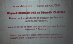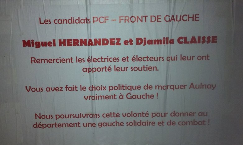 Pour info, le Comité Local du Parti Communiste Français d’Aulnay-sous-Bois distribue actuellement à la gare une déclaration qui, si elle n’appelle pas ouvertement à voter Gérard Ségura, est suffisamment explicite pour servir de consigne au second tour des cantonales.