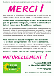 Sur son blog et sur les panneaux électoraux, François Siebecke, candidat Europe Ecologie Les Verts qui a fait 7,55% au premier tour ne veux pas faire appel à voter au candidat socialiste : "Nous ne donnons aucune consigne de vote et laissons les lecteurs écologistes faire leur choix en conscience".