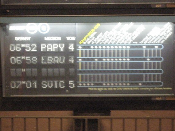 Il y a quelques jours, un voyageur me signalait la meilleure visibilité de l'ancien affichage électromécanique qui permettait avec un peu d'habitude, d'identifier de loin et du premier coup d'œil les dessertes des trains, alors que la lecture des "écrans plats" du système Infogare nécessite de s'en approcher et de rester posté pour les observer le temps du cycle de défilement de toutes les gares desservies.