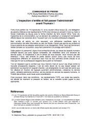 Ainsi, après la pérennisation du provisoire qui dure du fait d'un nouveau report de la réintégration des locaux de l'école du Bourg 2 suite à l'enlisement des opérations de désamiantage de l'ancienne usine CMMP, après la constatation d'une insalubrité des locaux préfabriqués de plus en plus grande (avec pétition à succès à l'appui et rendez-vous en mairie pour exposition des problèmes), après l'incompréhension devant l'absurdité des remplacements incessants concernant une classe de petite section (avec nouvelle pétition à succès à l'appui et rendez-vous avec l'inspectrice de circonscription pour des explications), la colère des parents se cristallise désormais suite au refus de l'inspection de prendre en compte les légitimes indignations soulevées par tant d'instabilité d'enseignement pour des élèves qui, rappelons-le, découvrent l'école (bienvenue !...). Vous pouvez lire ici ou ci-contre (en cliquant sur l'image) le communiqué diffusé par la FCPE à cette occasion.