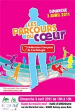 La halle d'athlétisme du Stade du Moulin Neuf accueille dimanche 3 avril de 10h à 13h les parcours du coeur 2011. Le but de cette manifestation nationale ? Sensibiliser le grand public aux maladies cardio-vasculaires et récolter des dons. Dimanche à Aulnay, pas de compétition au stade donc, mais au programme de l'événement :