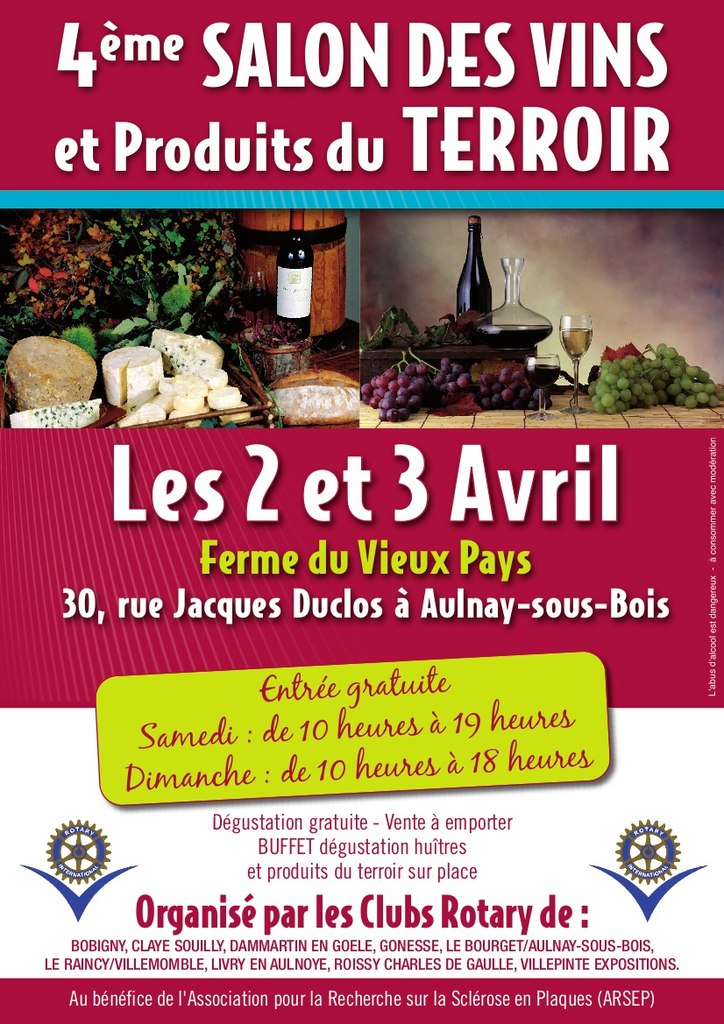 Pour voir Aulnay-sous-Bois en rouge, blanc et rosé, c'est ce week-end ! Du fait de la tenue à la Ferme du Vieux Pays du 4ème salon des vins et produits du terroir samedi 2 avril de 10h à 19h et dimanche 3 avril de 10h à 18h s'entend...