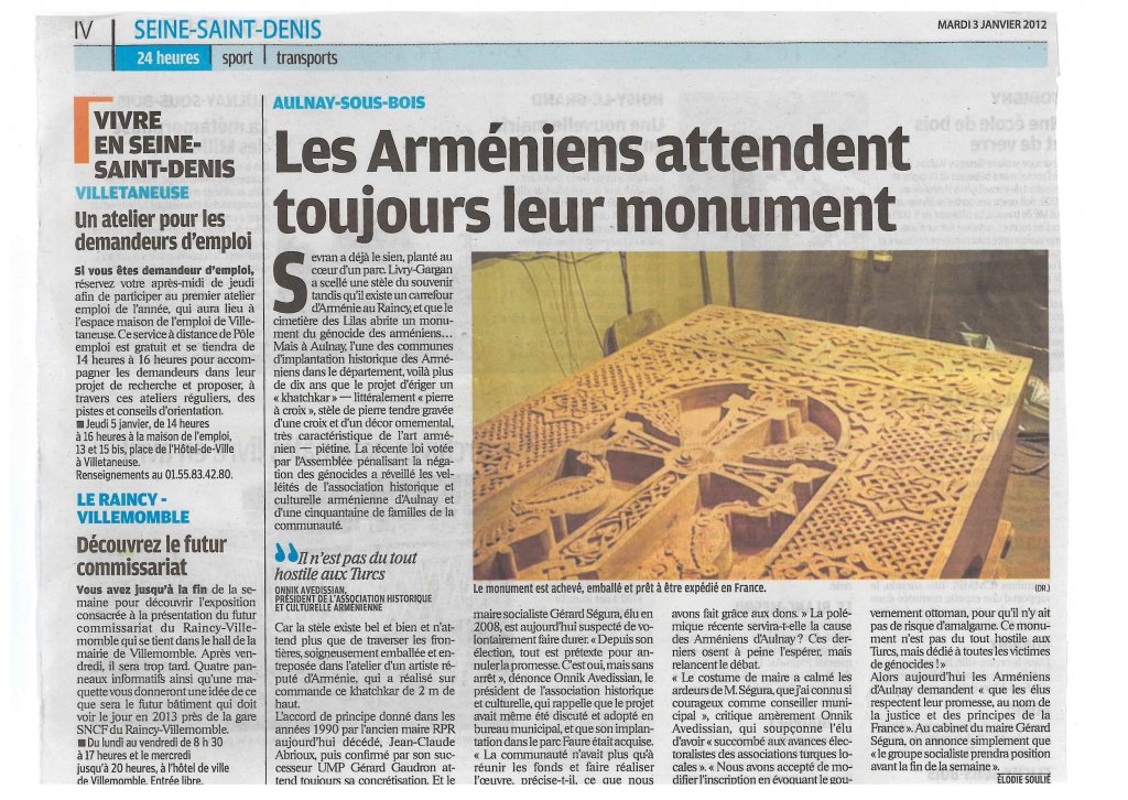 2 Réponses à “Un monument au parc Faure d’Aulnay-sous-Bois pour le génocide arménien?”
