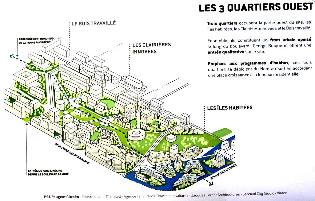 Vue des 3500 logements des quartiers ouest prévus par PSA dans le document « La Fabrique » annexé au dossier d’enquête publique du PLU depuis le 14/10/2015 (mais non mis en ligne)