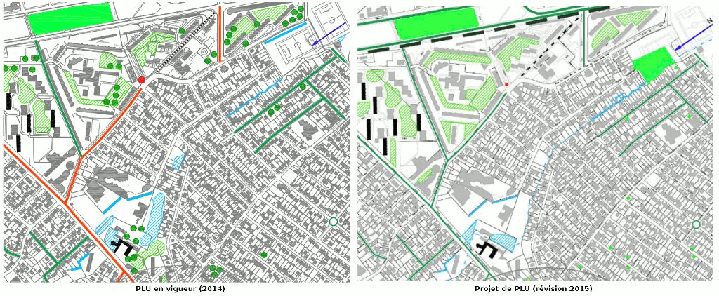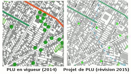 Références: Site de l'enquête publique, PLU2015 - Plan de protection du patrimoine, PLU 2014 - Le plan des protections