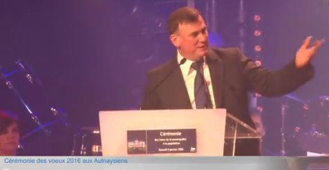 Voici un petit compte rendu du discours de Bruno Beschizza (en vidéo ici) lors de la cérémonie des vœux 2016 aux Aulnaysiens du samedi 9 janvier au gymnase Pierre Scohy. Après une entrée à l'américaine avec un chauffeur de salle demandant les applaudissements sur fond de musique et déchaînement de lumières, notre maire après les remerciements aux personnalités débute son discours.