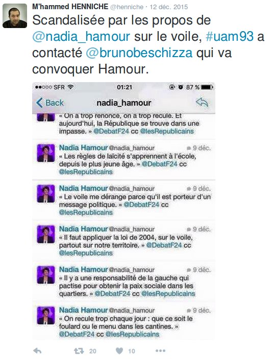 Vous trouverez aussi ci-dessous la copie du Tweet de M’Hammed Henniche, secrétaire général de l’UAM 93: