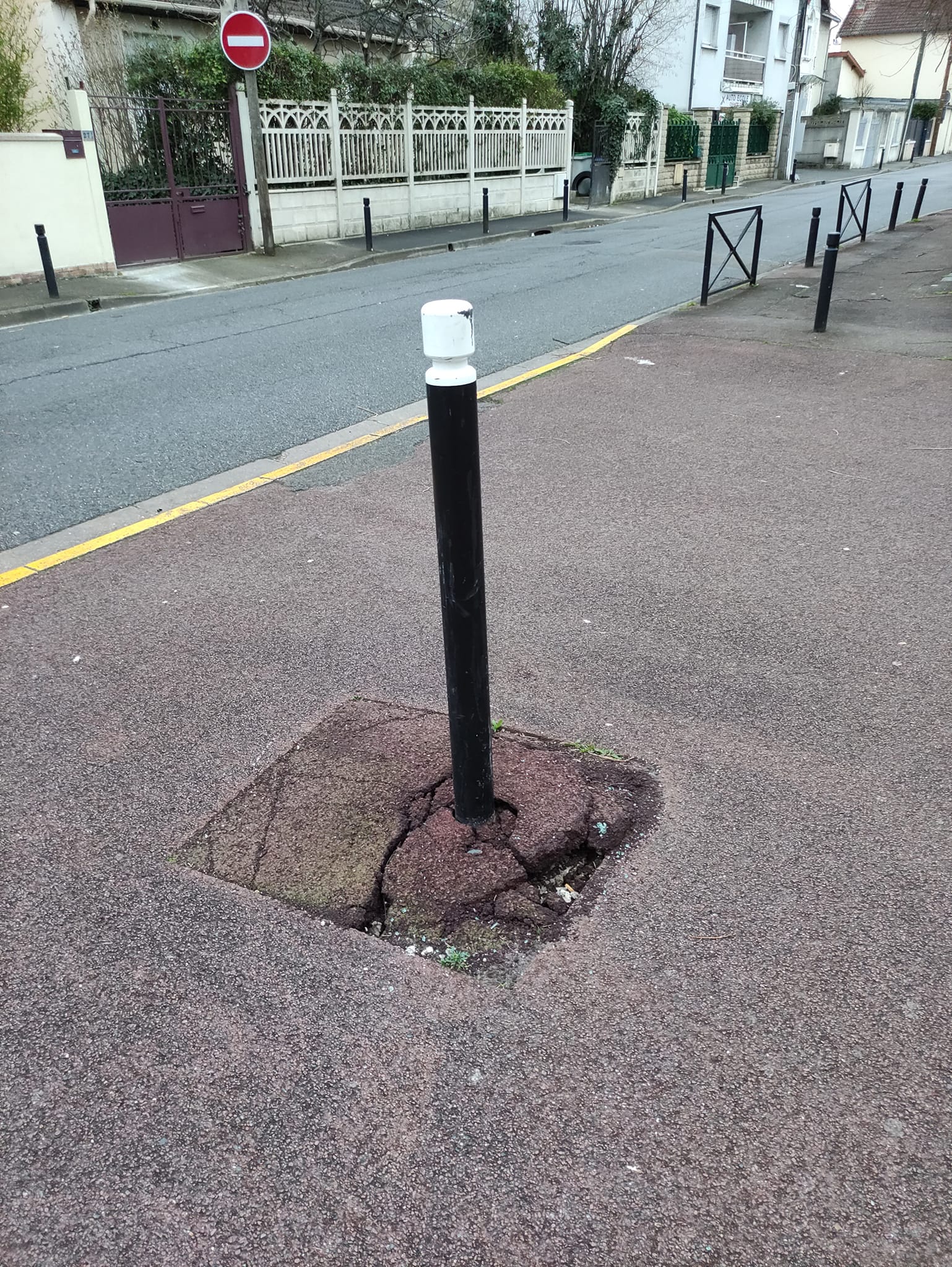 Chanteloup, ce poteau entre 2 parkings, avait été descellé suite à un choc avec un véhicule il y a quelques mois :