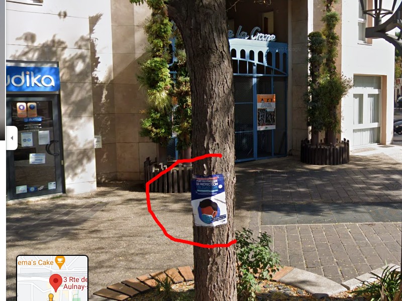 Je n’avais jamais fait attention à un arbre à cet endroit… Comme quoi… Effectivement au vu de l’image de Google Maps… Il avait l’air d’être en bonne santé cet arbre, peut être quelqu’un est il passé juste devant sans masque, et il a attrapé le Covid ? lol