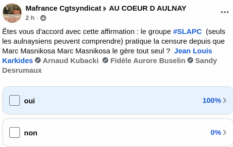 Celui-ci publie aussi sur le site de l'adjoint de notre ville chargé des finances et bloque tous les articles que nous envoyions il y a quelques années. Certains, peu, sont acceptés quand ils ne gênent pas la majorité municipale.