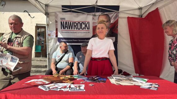 MAJ à 23h00: La candidate Ewa Wendrowska du parti d'extrême droite PiS a brandit dans un stand la banderole pour le leader Karol Nawrocki. Quand nous sommes passés, ce stand n'était plus en place. Difficile tout de même de ne plus parler de rassemblement d'extrême droite.