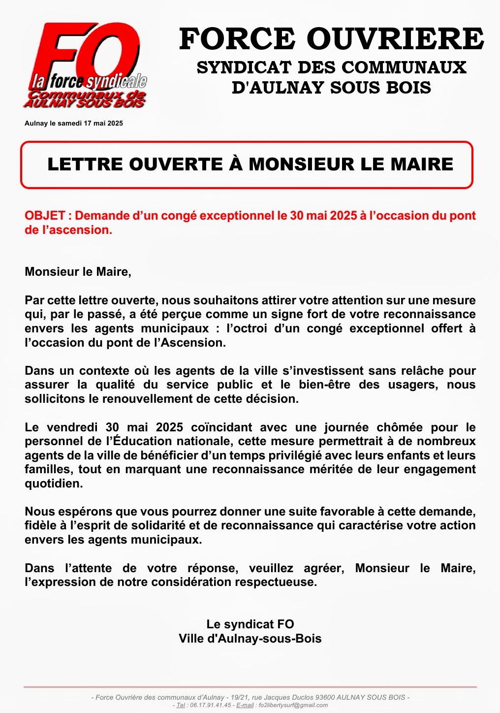 Une Réponse à “FO demande au maire un congé pour le 30 mai”