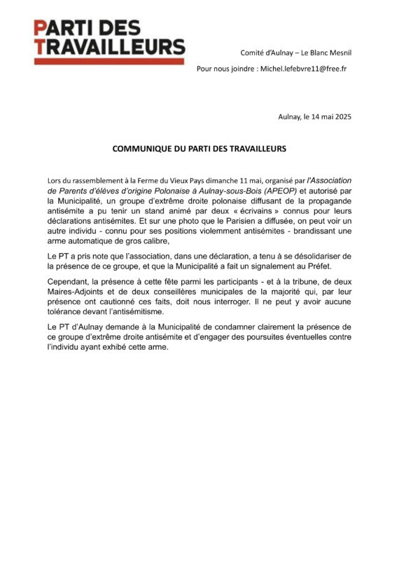 3 Réponses à “Week-end polonais, communiqué du Parti des Travailleurs”