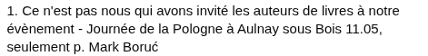 La municipalité, elle aussi, refuse sa responsabilité. Cependant, sur l'affiche ci-dessous, avec le logo de la ville et celui de l'organisation, il est bien indiqué la venue de 10 écrivains d'exception de Pologne et d'une démonstration militaire !