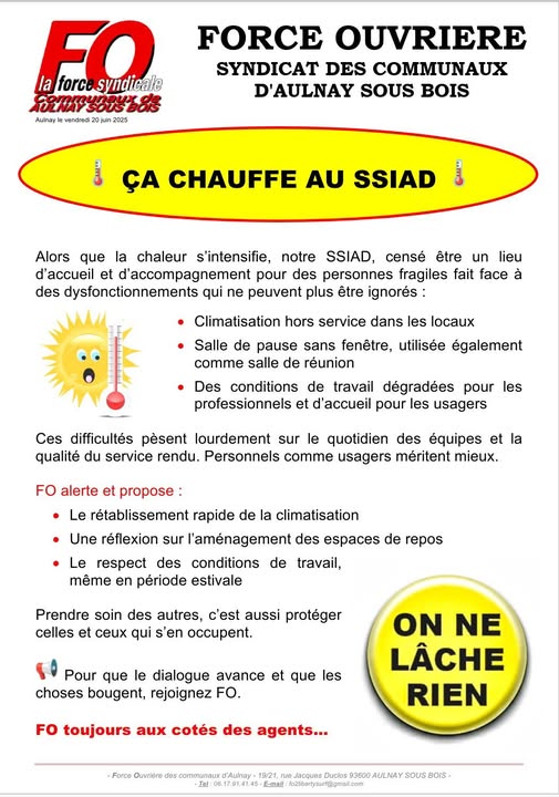 Une Réponse à “Ça chauffe au SSIAD, communiqué de FO”
