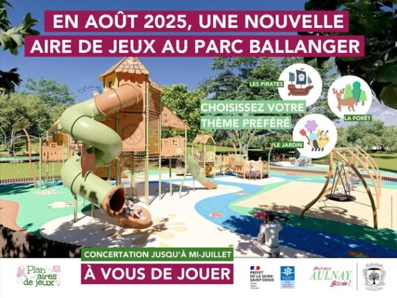 Pour la nouvelle aire de jeux du parc Robert BALLANGER, dont la livraison est attendue mi-août 2025, vous avez le choix entre 3 thèmes : l’île aux pirates ; la forêt enchantée ; le jardin extraordinaire.