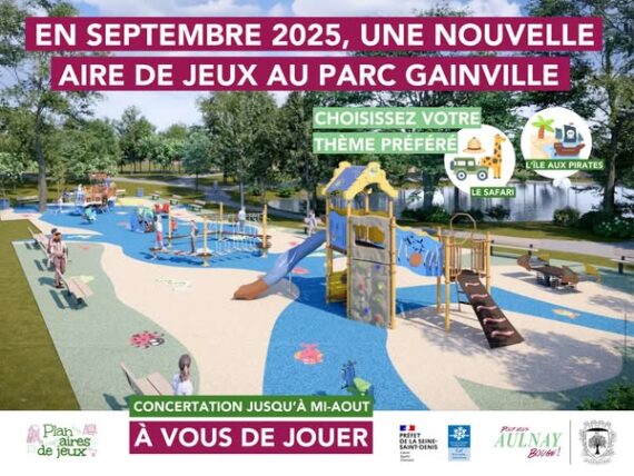 En 2025, trois nouvelles aires de jeux sont prévues dans les parcs Robert BALLANGER (livraison mi-août), Gainville (livraison mi-septembre) et square Jean-Philippe SMET (livraison à la Toussaint). [NDLR : Cette troisième n'était pas indiquée sur la page FB de la ville d'où notre titre]