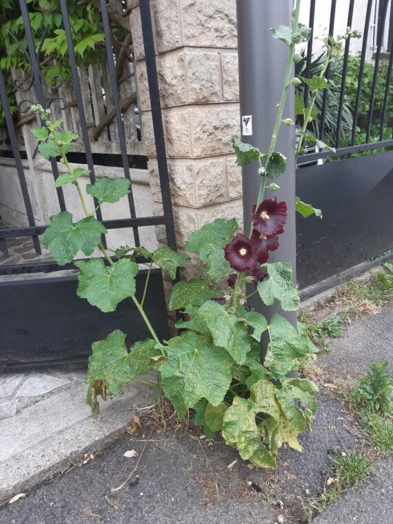 Le problème est que les services municipaux passent parfois dans les rues et rasent alors tout indistinctement, jolies fleurs comprises. Du coup je sème juste des coquelicots qui poussent très vite ; parce qu’une rose trémière ça me fendrait le coeur de la voir massacrer