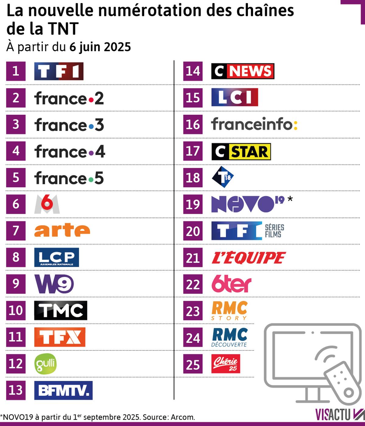 Deux nouvelles chaînes font leur apparition : T18 (sur le numéro 18 dès le 6 juin) et OFTV, la chaîne du journal « Ouest France » rebaptisée NOVO19 (sur le numéro 19 et dont le lancement est annoncé pour le 1er septembre).