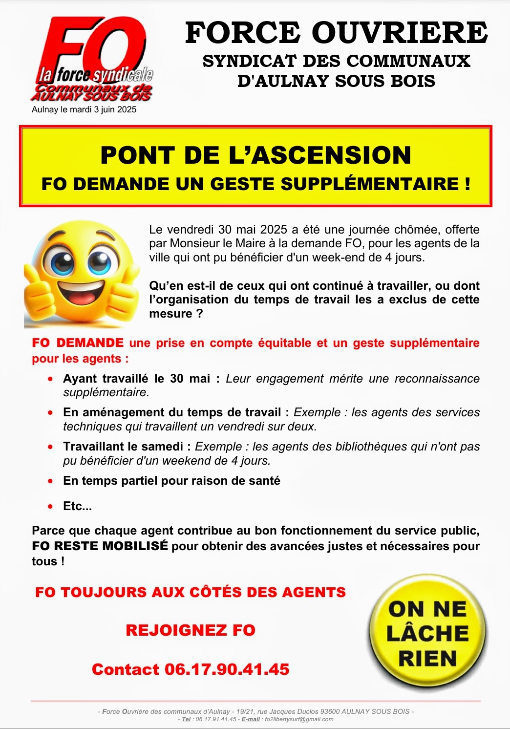 Une demande de FO Communaux
