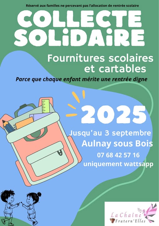 Pour les familles nécessiteuses ne percevant pas l'allocation de rentrée scolaire, une collecte de fournitures scolaires est organisée.