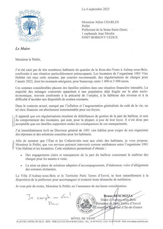 1001 Vies Habitat, régularisation de charges excessives, le maire saisit le Préfet