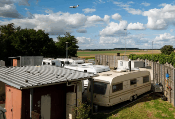 Émile Scheitz, ce retraité décrit, au téléphone, l’aire de Tremblay-en-France, située sous une ligne à haute tension, à moins de 150 mètres des pistes de l’aéroport de Roissy : « C’est très, très bruyant, jour et nuit. Tout tremble quand les moteurs des avions chauffent. Selon le vent, ça sent le kérosène