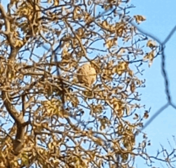 Cette photo a été prise au fond de mon jardin. On y voit sur un grand noyer, un nid de frelons asiatiques.