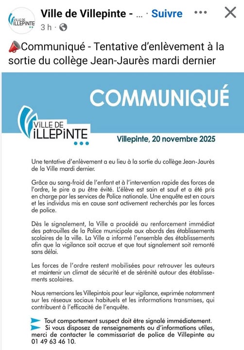 Un communiqué de la ville de Villepinte utile à partager, soyons vigilants.