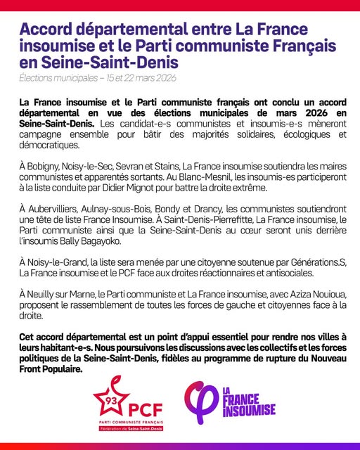 6 décembre 2025 :Accord départemental entre le PCF et LFICeci explique celà ! Et surement dù à la scission entre le PS et LFI au niveau national. Fini [...]