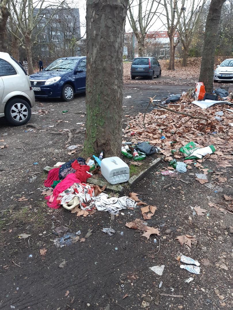 8 décembre 2025 :L’état déplorable du parking derrière le petit centre commercial, avenue de Savigny
