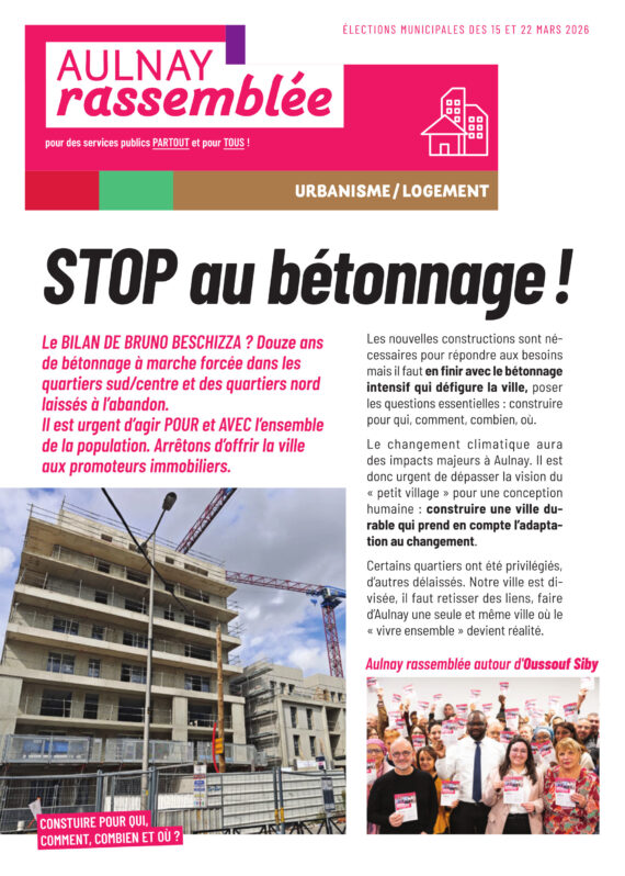 Comme nous l'avions annoncé, nous publions un tract de la liste "Aulnay Rassemblée" distribué sur les marchés. Tous les autres candidats peuvent faire de même.