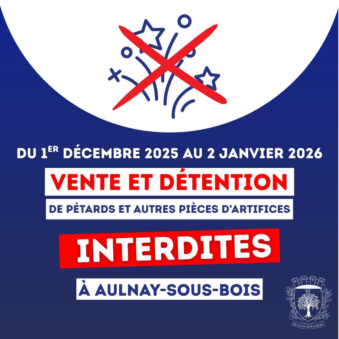 À l’occasion des réveillons du 24 et 31 décembre 2025, le Ville rappelle que la vente, la détention et l’utilisation de pétards et pièces d’artifices sont interdites du 1 décembre 2025 au 2 janvier 2026 sur un arrêté municipal.
