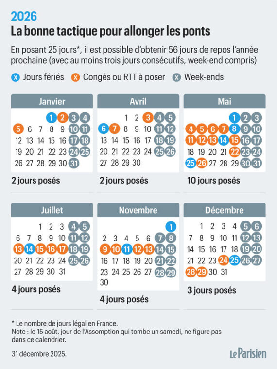 En posant 25 jours de congé, il est possible de bénéficier de pas moins de 56 jours de repos au cours de l’année. Voici comment en profiter.