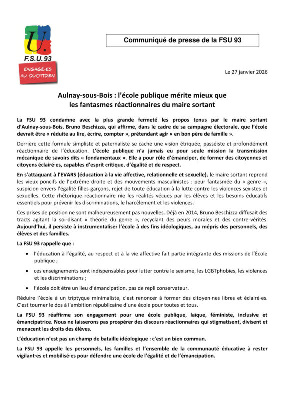 La FSU 93 condamne les propos de Bruno Beschizza sur l’école