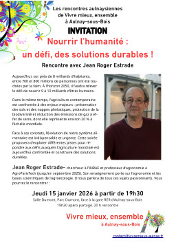 11 janvier 2026 :« Nourrir l’humanité, un défi », débat VME le 15 janvier à Dumont