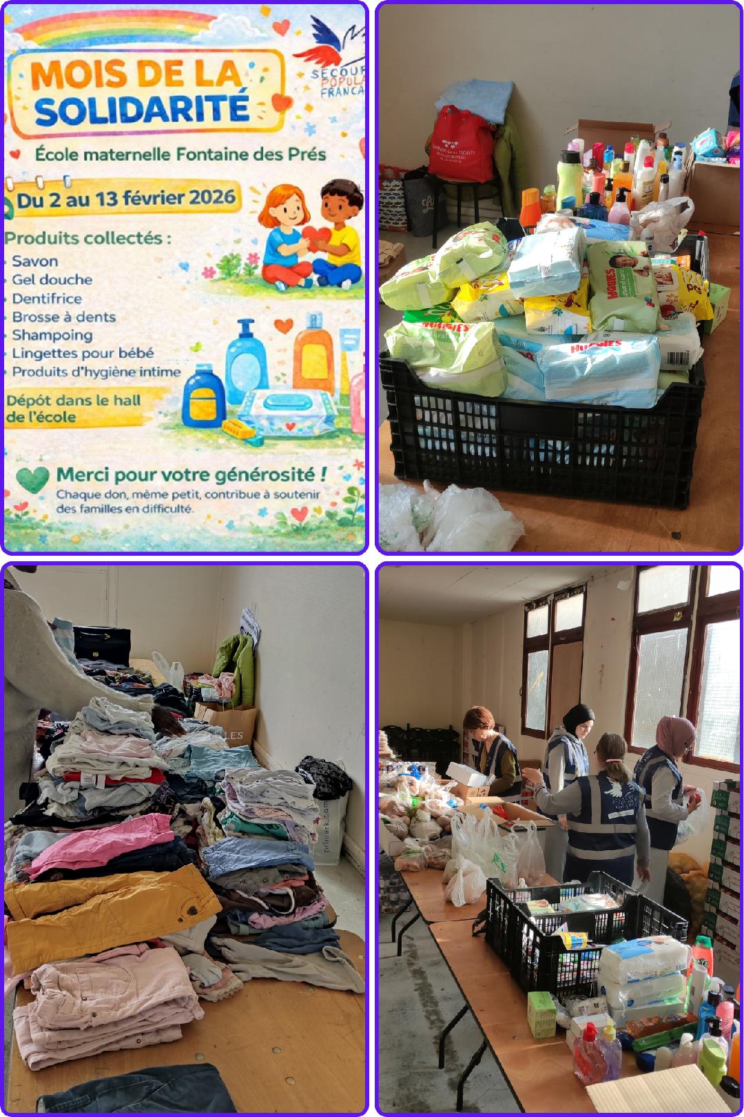 • Un immense merci au corps enseignant et aux enfants de la maternelle La Fontaine des Prés, qui ont collecté et déposé des produits d’hygiène au profit de notre comité. Cette initiative solidaire a apporté un vrai rayon de soleil aux bénéficiaires, pour qui ces produits sont essentiels au quotidien.
