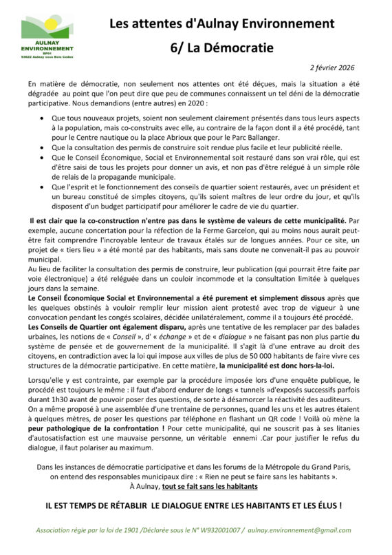 Les attentes d’Aulnay Environnement -6- La démocratie