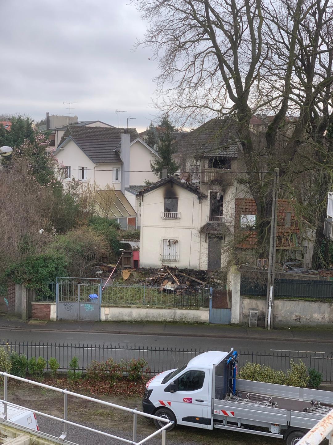 Situé face aux rails du RER, rue Louis Michel, ce pavillon a été complètement détruit par un incendie.