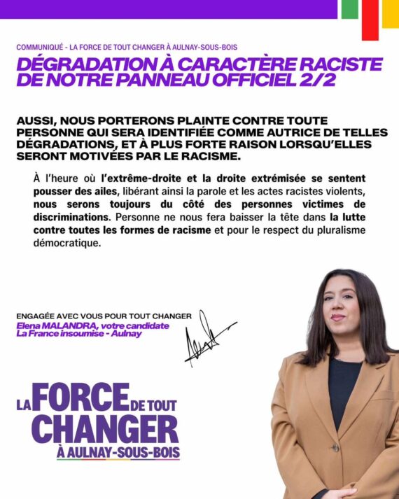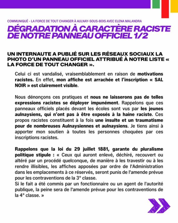 13 mars 2026 :Dégradation d’un panneau officiel, communiqué de la liste PCF-LFI