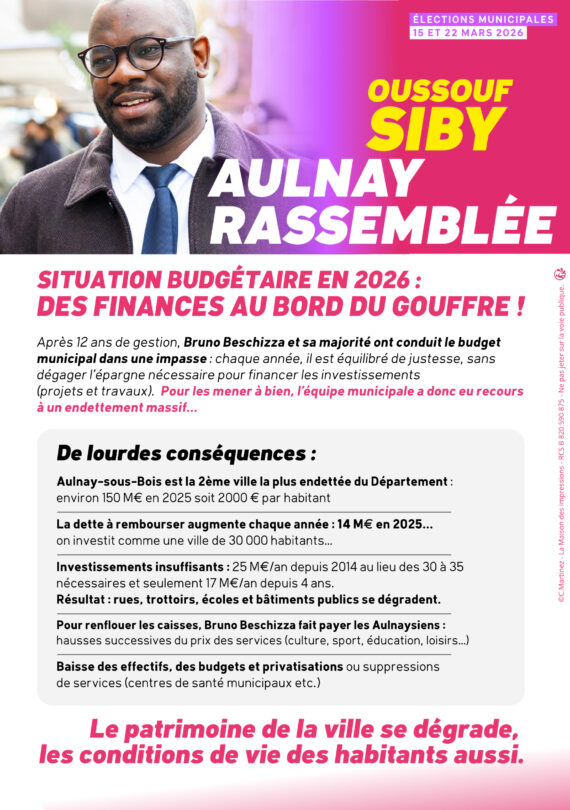 10 mars 2026 :Situation budgétaire, un tract d’ « Aulnay Rassemblée »