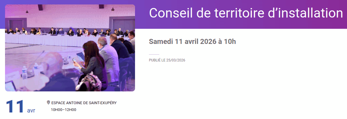 À la suite des élections municipales des 15 et 22 mars 2026, le Conseil de territoire d’installation de Paris Terres d’Envol se tiendra le samedi 11 avril à 10h à Espace Antoine de Saint-Exupéry (anciennement Espace Pierre Peugeot, 25 boulevard André Citroën à Aulnay).