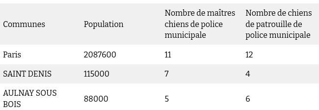 NDLR : Ce tableau montre que notre ville n'est pas celle qui a le plus de policiers municipaux par habitants