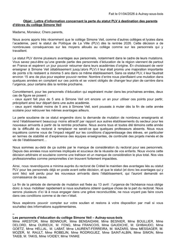 Le collège Simone Veil perd le statut de Politique de La Ville
