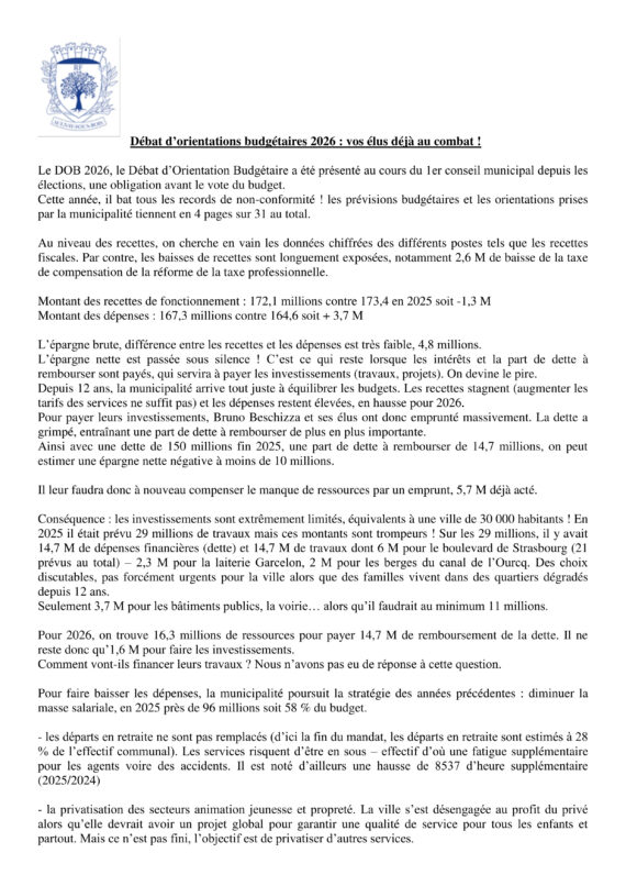 Peu d'investissement, recours à l'emprunt, un patrimoine qui se dégrade… Le groupe d'opposition fait sa critique du débat d'orientation budgétaire présenté lors du premier nouveau conseil municipal.