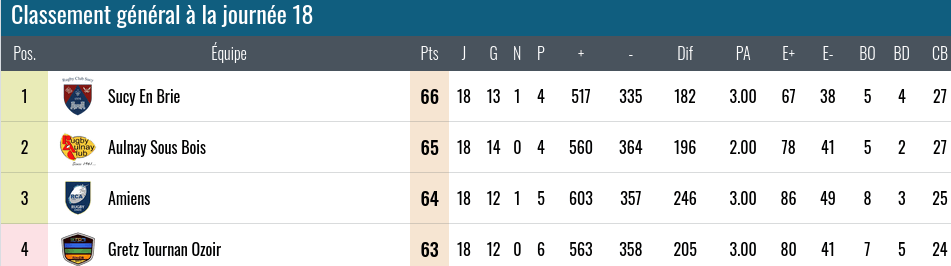 Notre club est deuxième de sa poule, mais les jeux sont serrés comme l'indique ce classement :